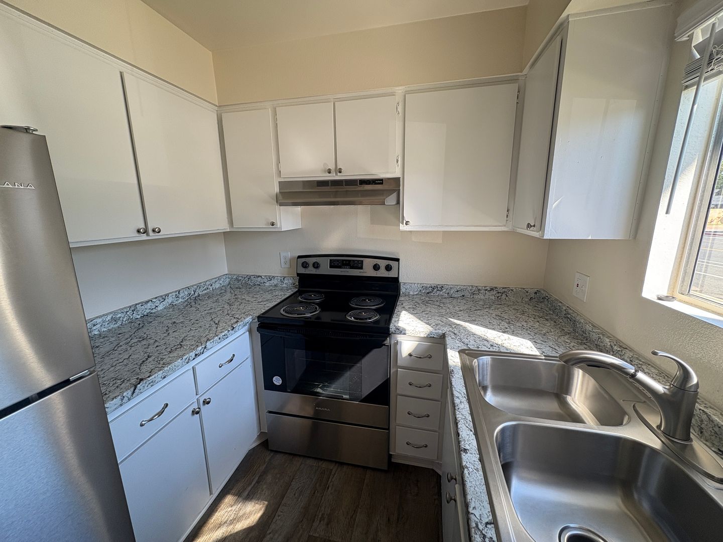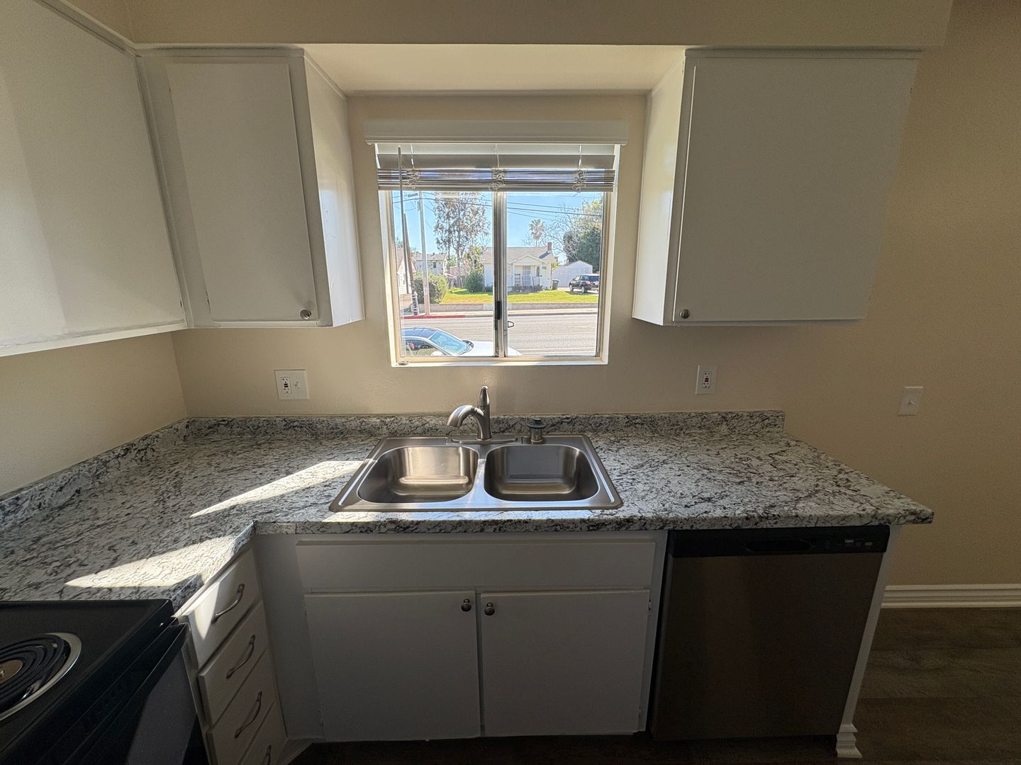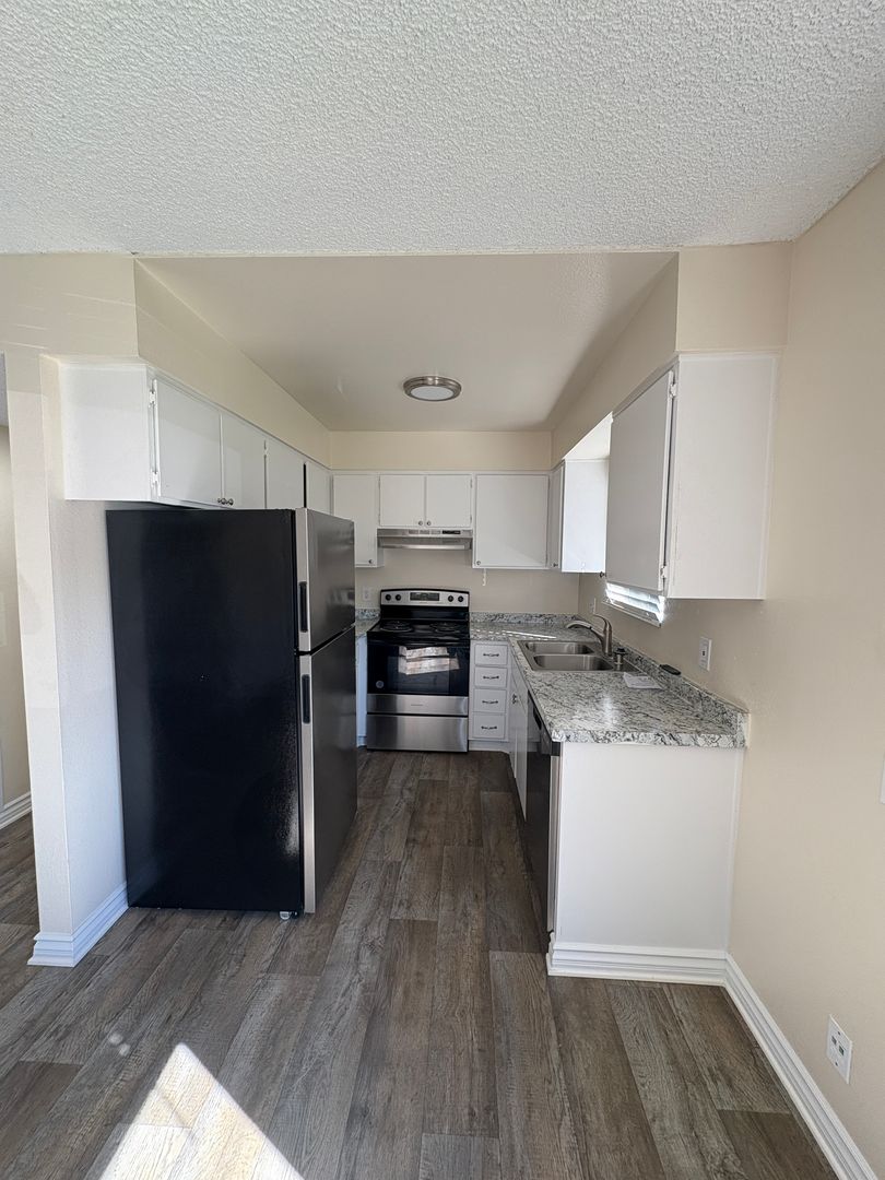 The kitchen includes stainless steel appliance , a dishwasher for easier meal cleanup. Freshly painted , new flooring, new blinds.